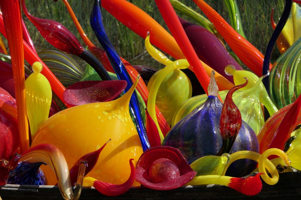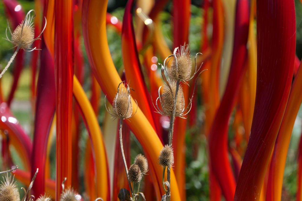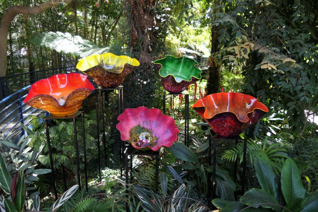 Neben den Pflanzen gibt es viele Glas-Skulpturen von Dale Chihuly https://www.chihuly.com: