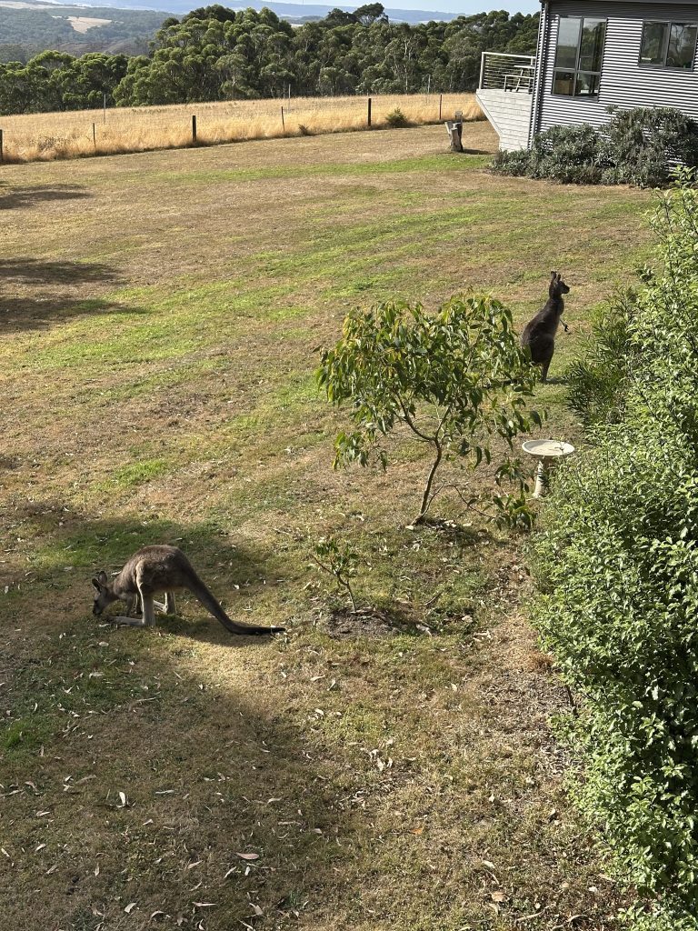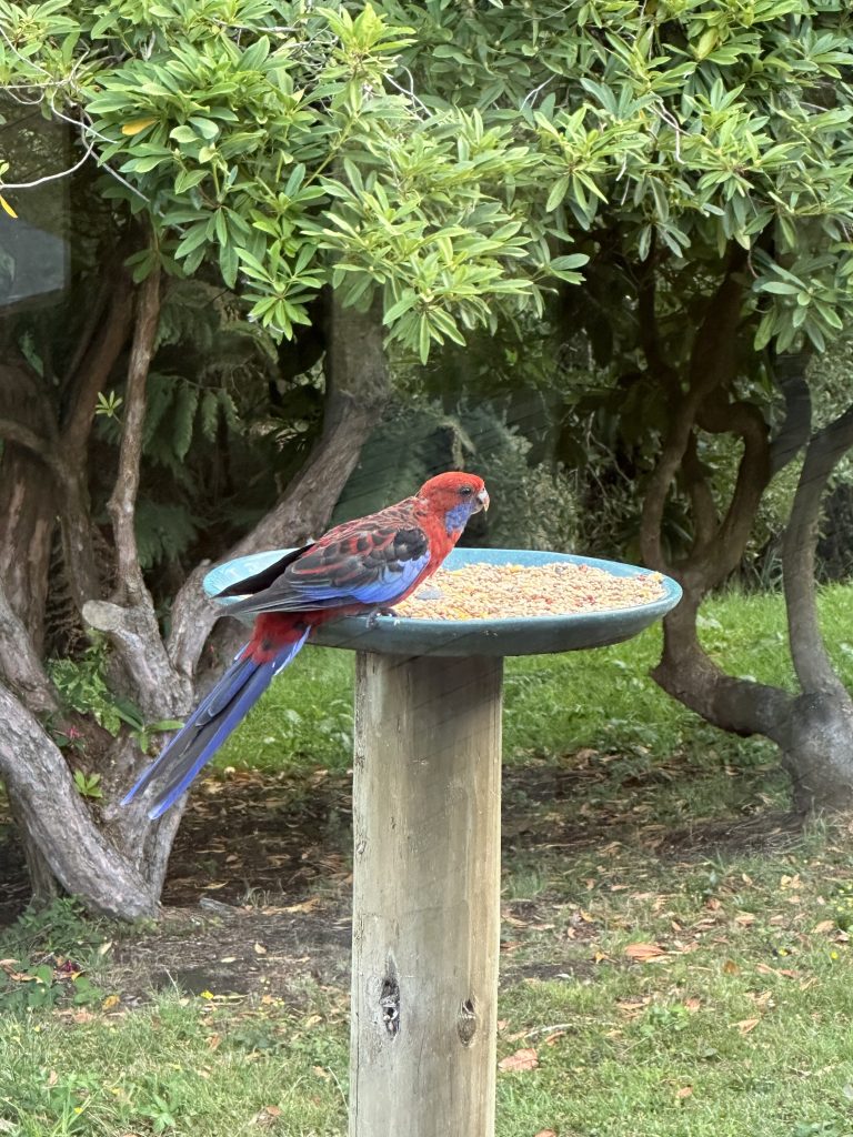 Bei der Ankunft in unsere Unterkunft “By Moonlight” warteten schon wieder die Kangarus auf uns und im Restaurant dann ein paar bunte Papageien…
