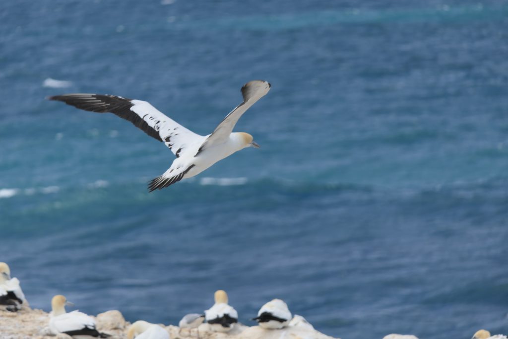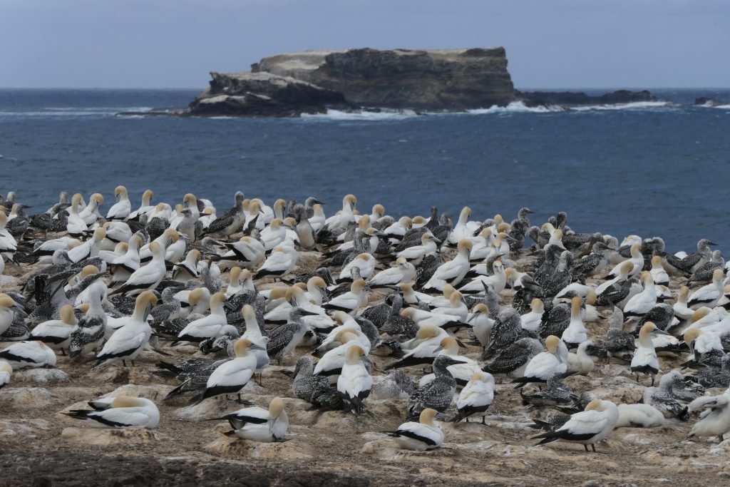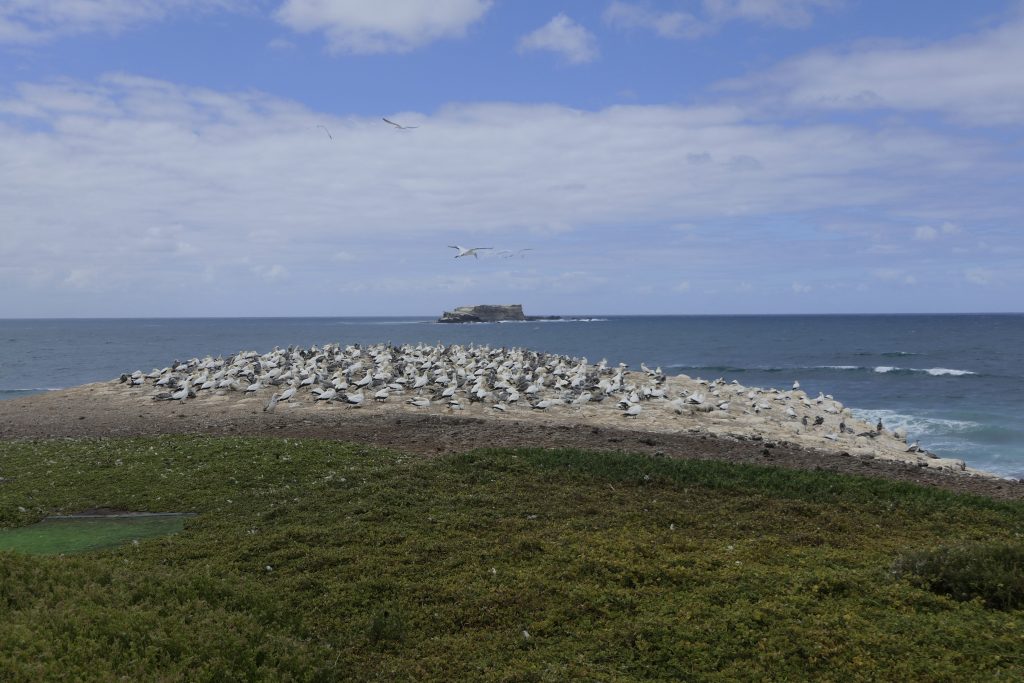 Einen ersten Stopp gab es an der Küste bei Portland am Point Danger. Hier befindet sich die einzige Gannet (Australischer Tölpel) Kolonie auf australischem Festland (Link). Wir hatten Glück, dass gerade ein Guide da war – so konnten wir näher ran an das Geschehen: