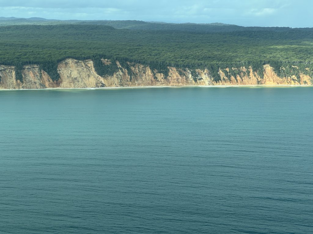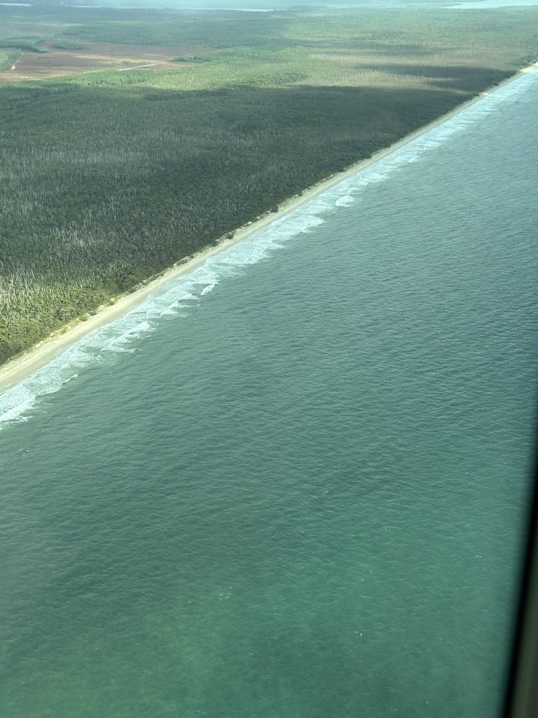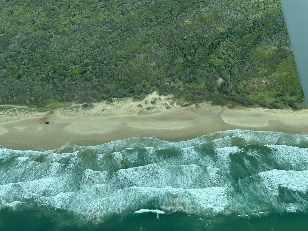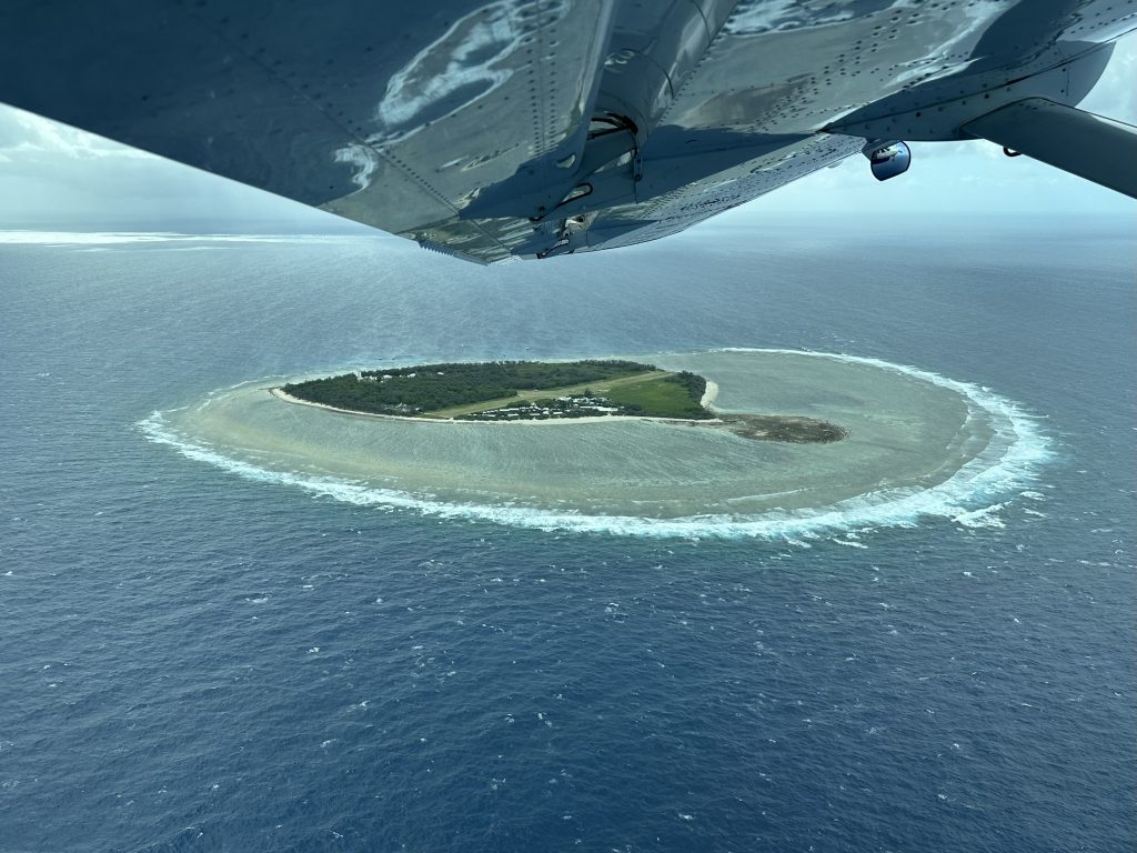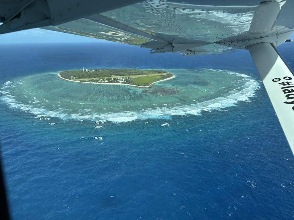 Und genau das war es auch. Um kurz nach 7 Uhr kam der Flieger, eine Cessna Grand Caravan C208B. Es gab keine Bordkarten, keine Sicherheitskontrolle, sondern nur eine Abfrage der Passagiernamen der insgesamt 6 Tagesgäste für LEI. Und dann eine Einweisung von Captain Kirk – ja wirklich! Und dann hieß es einsteigen, anschnallen und es ging los nach Lady Elliott Island (LEI). Der Flug dauert gut 80 Minuten und auf dem Hinweg hat der Pilot ein paar Schlenker eingebaut um schöne Bilder zu ermöglichen…