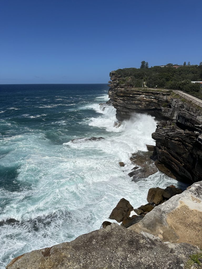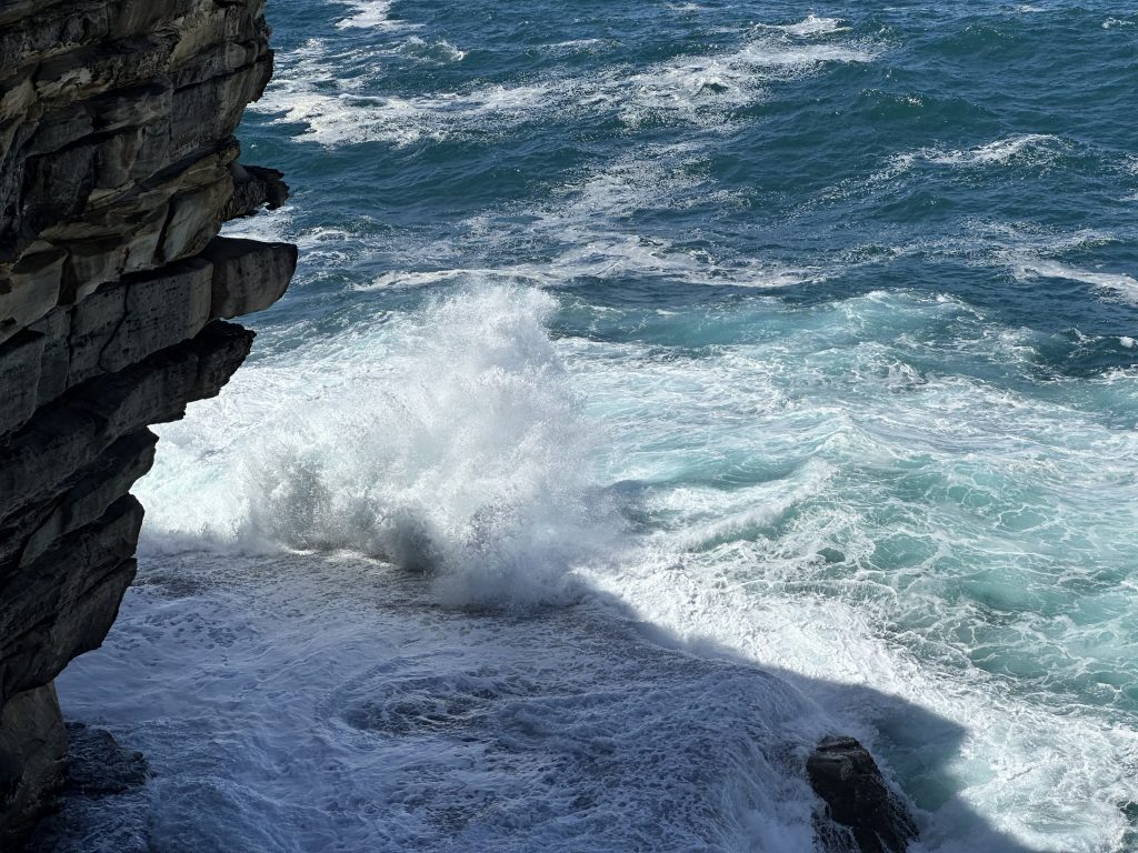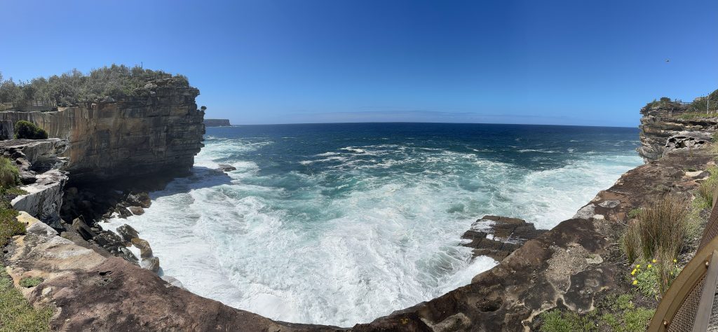 Auf der Anlegerseite sieht Watsons Bay sehr harmlos aus, doch wenn man auf die andere Seite der schmalen Landzunge zum The Gap hinaufgeht, dann sieht man schon die Gischt in der Luft, spürt die Feuchtigkeit der Seeluft und hört das Donnern der Wellen. Und so stellt sich das dann auch dar.