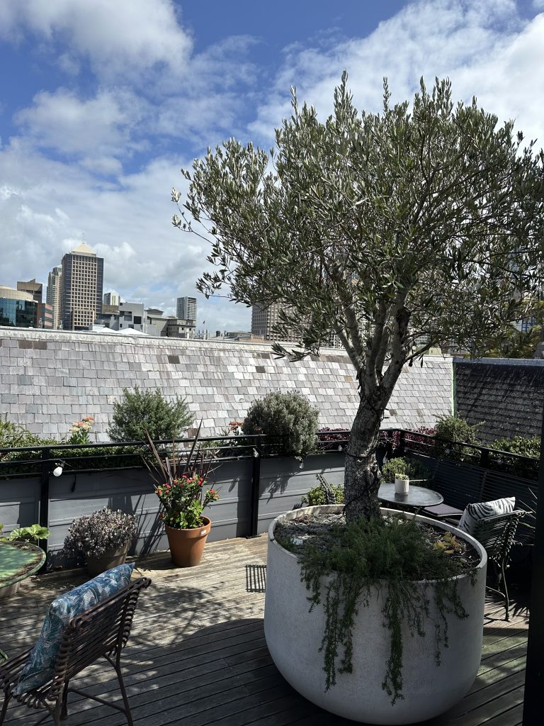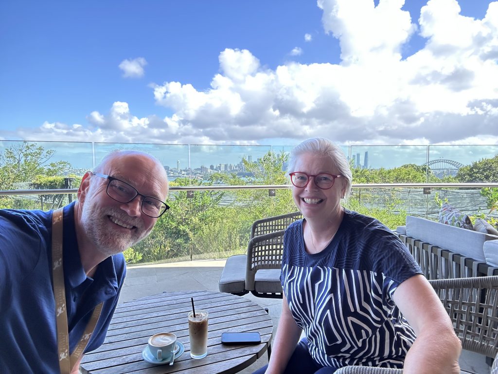 Da brauchten wir erst mal eine Erfrischung auf der Terrasse mit Blick auf den Sydney Harbour.