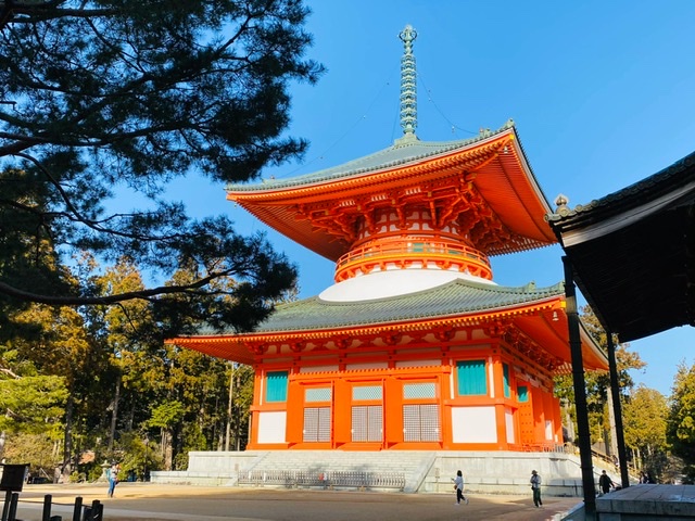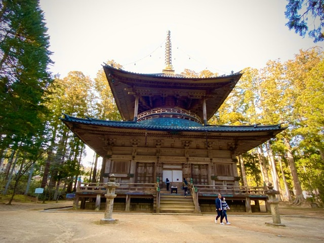 Mit dem Regionalzug, einer Standseilbahn und dem Bus ging es dann ins 900 Meter hoch in den Bergen liegende Kōya-san . Der kleine Ort wird von einer riesigen buddhistischen Tempelanlage beherrscht. Sie gehört seit 2004 zum Weltkulturerbe und ist wirklich sehr beeindruckend!