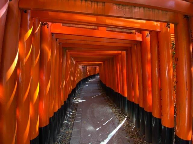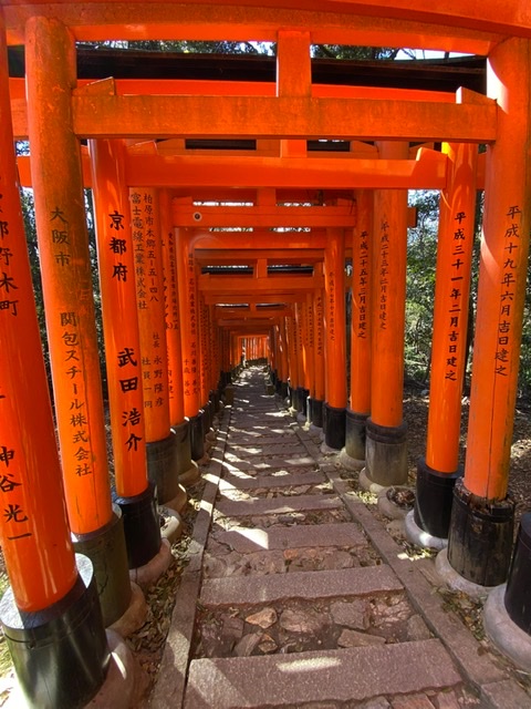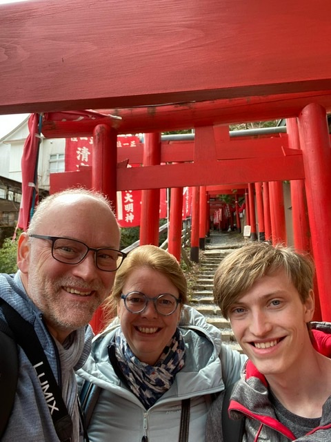 Das bekannteste touristische Ziel Japans stand heute auf unserem Programm: Fushimi Hinari-Taisha. Hier stehen tausende orangerote Torii, die zu einem der ältesten Shinto-Schreine auf dem Berg führt. Normalerweise schieben sich hier unglaubliche Menschenmassen durch – bei uns war es sehr entspannt und hat uns viel Freude gemacht!
