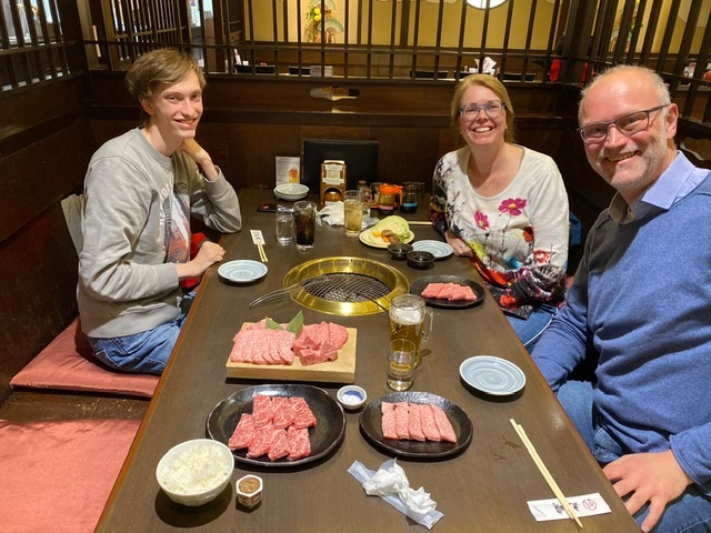 In einem besonderen Restaurant grillten wir uns unser frisches Fleisch vom regionalen Hida Rind selbst auf einem eingelassenen offenen Rost – sehr köstlich!