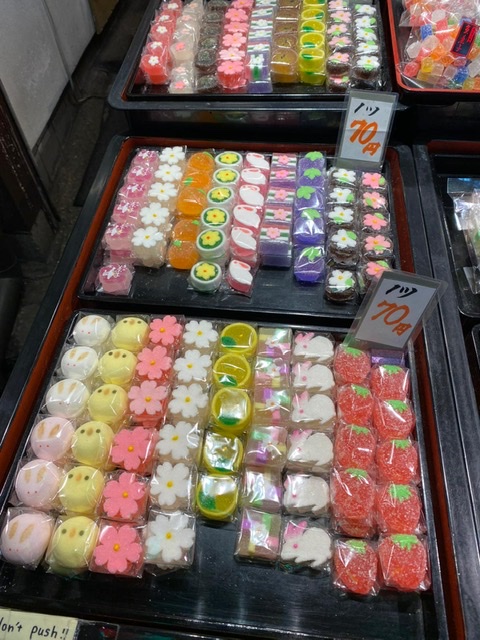Weil dabei natürlich nicht so viele Fotos entstanden sind, gibt es heute ein paar kulinarische Spezialitäten zum Staunen: In Japan gibt es unzählige Süßigkeiten. Viele aus Bohnen oder Reis und wirklich lecker. Oft sind das richtige kleine Kunstwerke. Ein Hauptmerkmal ist die aufwändige Verpackung. Jede Süßigkeit ist einzeln verpackt, dann wieder in speziellen Packungen, die wiederum mehrfach (!) verschweißt und verpackt sind. Offensichtlich ist das Thema Müllproblem hier noch nicht angekommen. Es wird zwar getrennt gesammelt, aber leider nichts vermieden. Darüber hinaus gibt es für jede Süßigkeit auch wieder ein anschauliches Modell, so dass man erkennen kann, was sich hinter all den Verpackungen verbirgt….