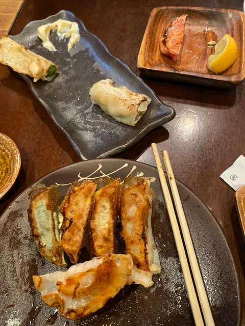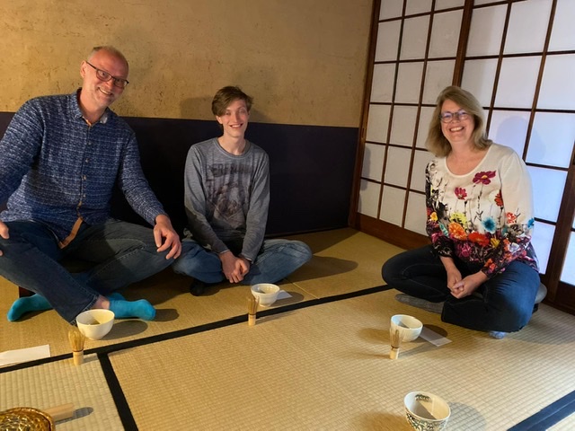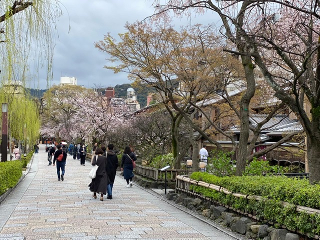 Bei starker Bewölkung und Schauerwetter sind wir in Kyotos Altstadtviertel herum gebummelt. Blühende Kirschbäume säumen die kleinen Wege am Kanal. Heute wurden viele Hochzeitsfotos in traditioneller Kleidung gemacht. Die Paare versuchen dabei möglichst ernst zu schauen. Alles ist perfekt durchorganisiert – aber sieht ziemlich anstrengend aus… Nach einem kleinen Besuch im nahe gelegenen Park, ging es für uns noch zu einer traditionellen japanischen Tee Zeremonie. Eine ausgebildete Gastgeberin der aufwändigen Prozedur wies uns in die rituellen Regeln der jahrhundertealten Abläufe ein. Alles wirkt auf uns sehr fremd, ist aber mit den ganzen Hintergrundinformationen auch richtig interessant. Wieder im Hotel packten wir für die morgige Weiterfahrt in die Berge. Die großen Koffer schicken wir schon nach Tokyo voraus – in den kommenden vier Tagen reicht uns dann der Rucksack. Abends gab es superleckeres Gyoza – das sind fingergroße Teigtaschen aus Reismehl, die unterschiedlich gefüllt sind.