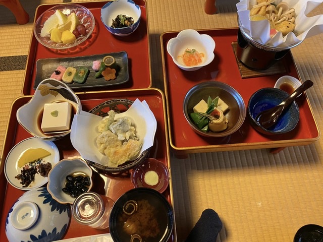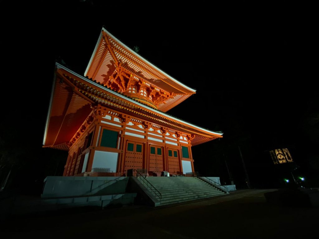 Hier gibt es jede Menge Tempel, in denen man beherbergt wird. Und so kosteten wir uns am Abend in unserer Herberge durch die vielseitige traditionell-japanische Küche. Danach noch ein kleiner Verdauungsspaziergang durch die kalte Nacht bis zum beleuchteten Tempel.