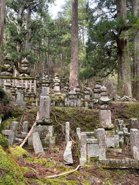 Also besuchten wir schon am frühen Morgen das 40 Meter hohe Daimon-Tor zur Stadt und wanderten danach zum rund fünf Kilometer entfernten Friedhof im Zedernwald. Hier sind nicht nur weit über 200.000 Gräber aus 1.100 Jahren zu finden, sondern auch das Mausoleum von Kobo Daishi, dem Begründer von Kōya-san. Die friedliche Atmosphäre unter den riesigen Bäumen hat uns begeistert.