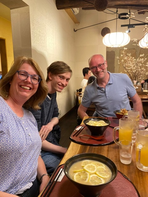 Die Kirschblüte (Sakura) bei Nacht begleitet unseren Weg zum Abendessen – diesmal köstlicher Lemon-Ramen (Nudelsuppe mit Zitronen). Wir werden unseren Japanaufenthalt wohl um zwei Tage verlängern müssen – die Lufthansa hat die Flugtage reduziert und uns nach hinten geschoben. Es bleibt also spannend…