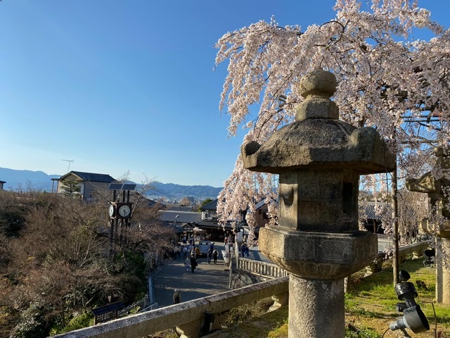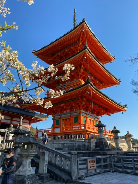 Bei wunderbaren Frühlingswetter ging es im Anschluss noch am schön gelegenen Kiyomizu-dera Tempel.