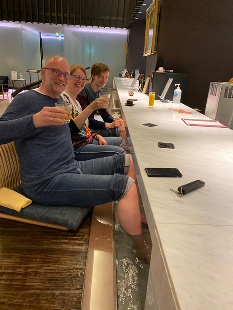 Nach einer ordentlichen Portion Okonomiyaki gab es zum Abschluss an der Fußbade-Bar im Hotel noch einen leckeren Pflaumenwein on the Rocks. ? Morgen geht es dann nach Tokyo…