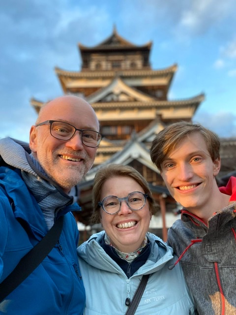 Auf der Insel Miyajima, 20 km vor Hiroshima, wird leider gerade das berühmte rote Japantor renoviert. Aber die zahmen Rehe sind da! Mit der Seilbahn sind wir auf den Berg gefahren und zur Aussichtsplattform gewandert – danach 11 Kilometer abwärts, über unzählige Naturstufen und Steine. Zurück in Hiroshima haben wir uns mit einem köstlichen Steak belohnt. Schlafen werden wir heute Nacht sicher gut…